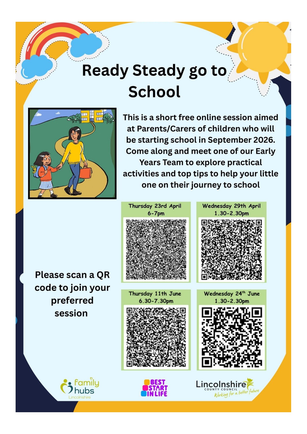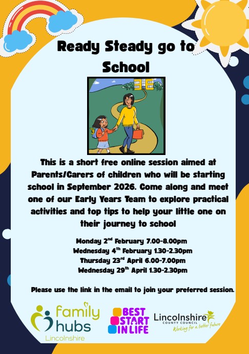 The Early Years Team at Lincolnshire County Council have put together some online live events for parents/carers on starting school. Please click on the poster below for further information.